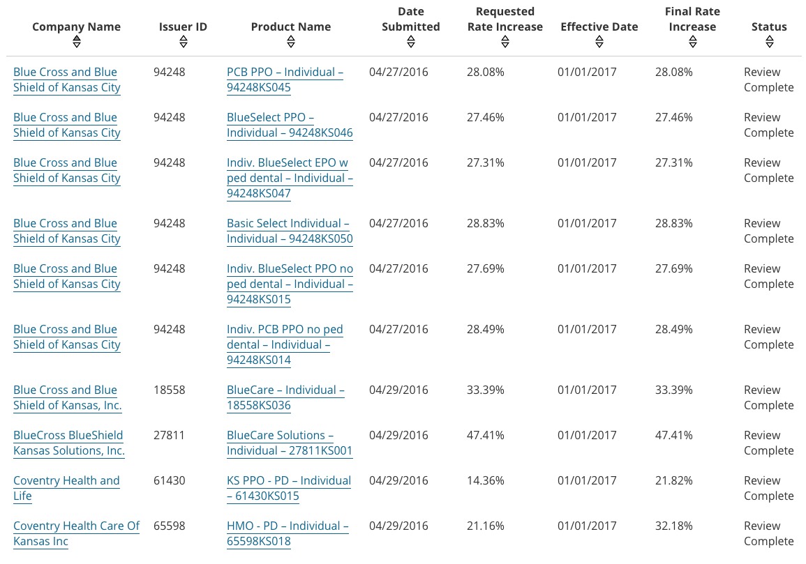 I should also note that according to Louise Norris, Medica is also entering the Kansas exchange for the first time, which means there's no "increase" to list since there's no current rates to compare them to.