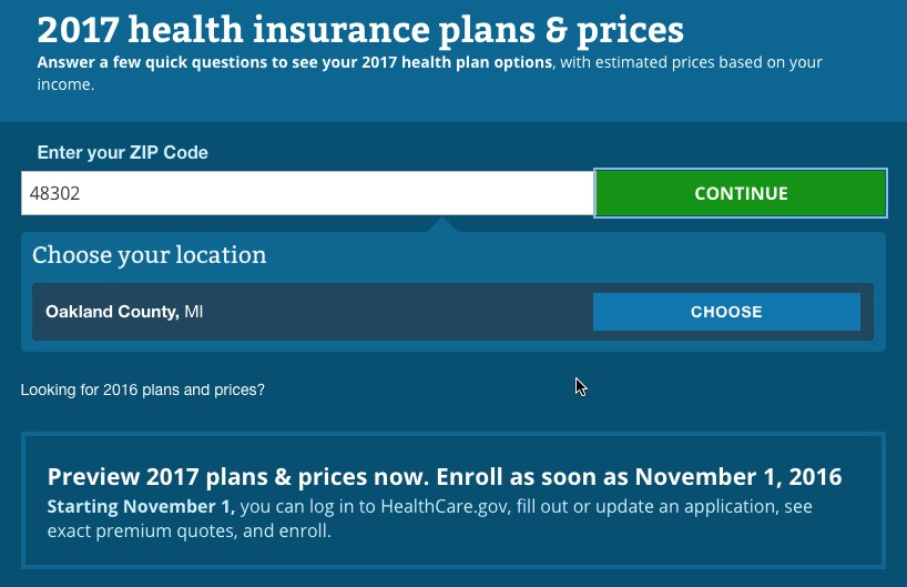 Huh. OK, it looks like three of the ACA state-based exchanges have already launched their 2017 window shopping tools: Idaho, Maryland and California!