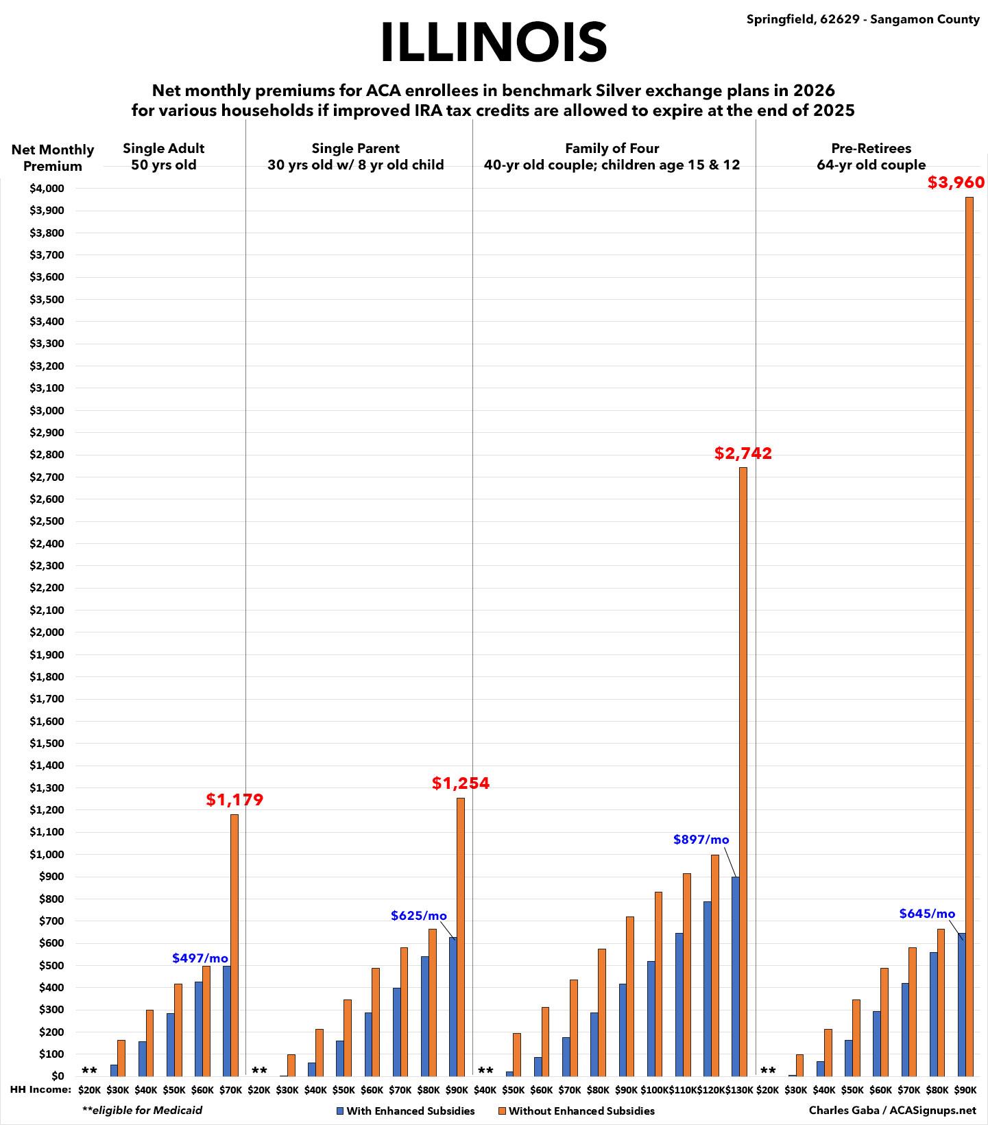 How much more will ~488,000 ILLINOIS residents pay if the improved #ACA subsidies expire? (updated)