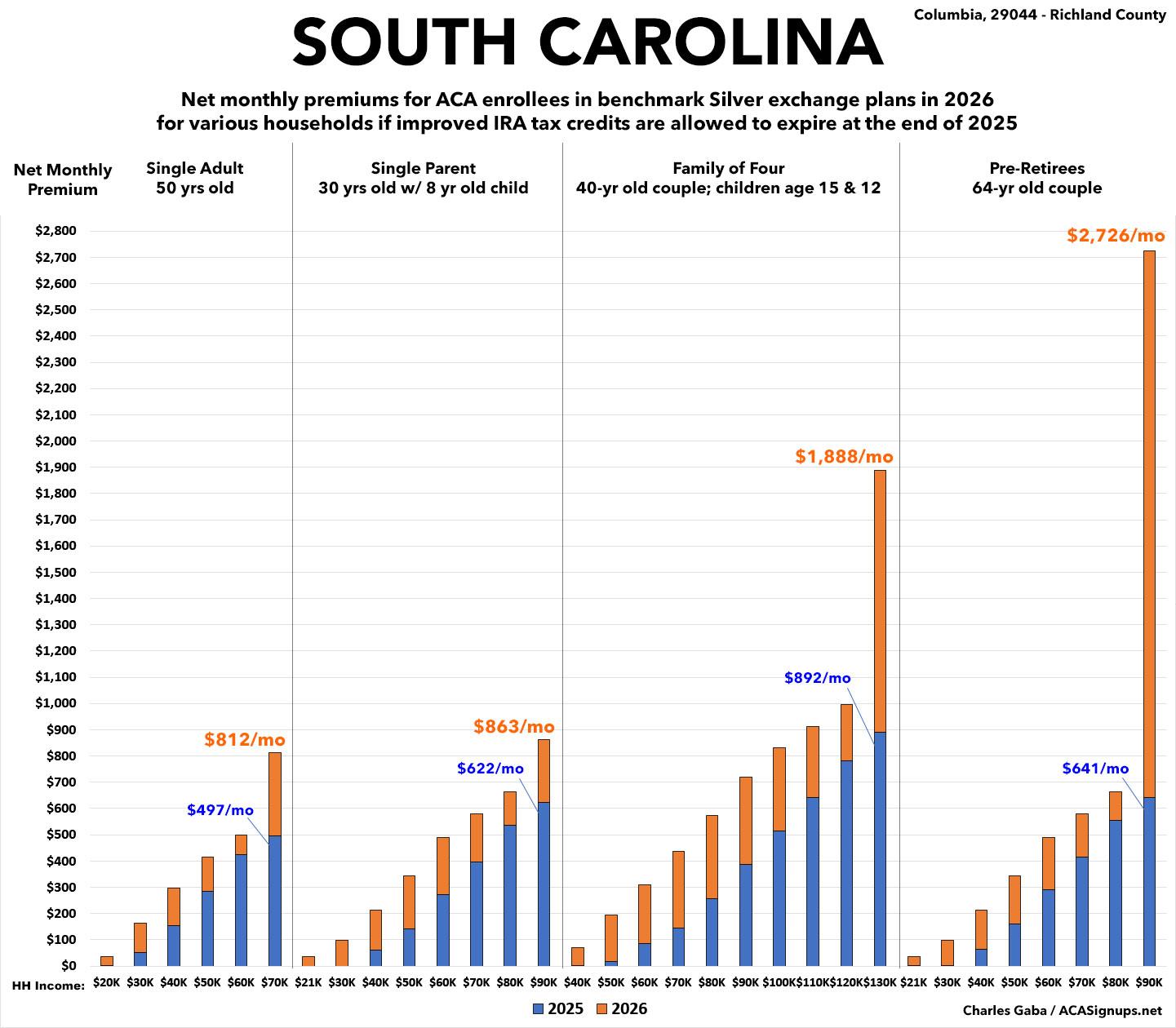 How much more will ~623,000 SOUTH CAROLINA residents pay if the improved #ACA subsidies expire? (updated)