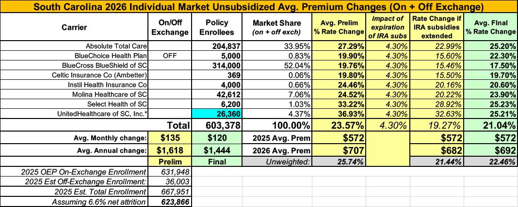 In South Carolina specifically, all of this will result in average gross premiums hikes of 21.0%.