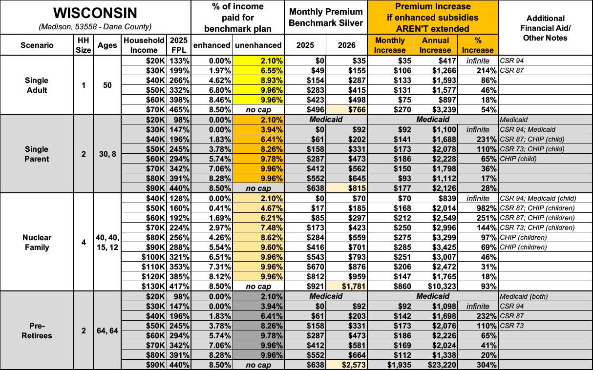 I decided to run the numbers myself to get an idea of just how much the combination of expiring IRA subsidies and the CMS "Affordability/Integrity Rule" will cause net premiums to increase starting in January 2026.