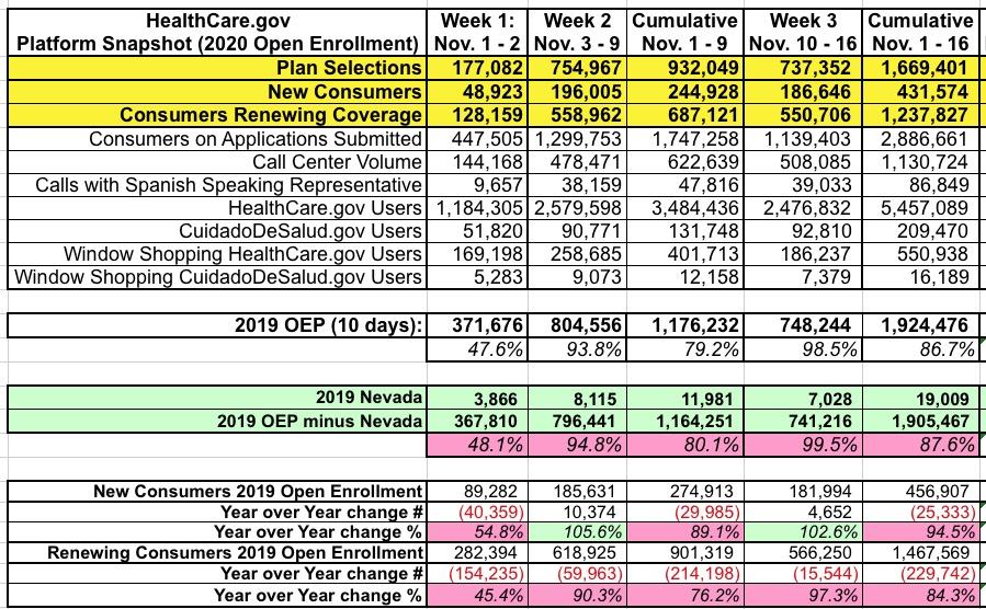 If you assume around 130,000 of the difference is due to the missing day, that still leaves 2020 Open Enrollment around 100,000 short of the same time period last year on HealthCare.Gov.