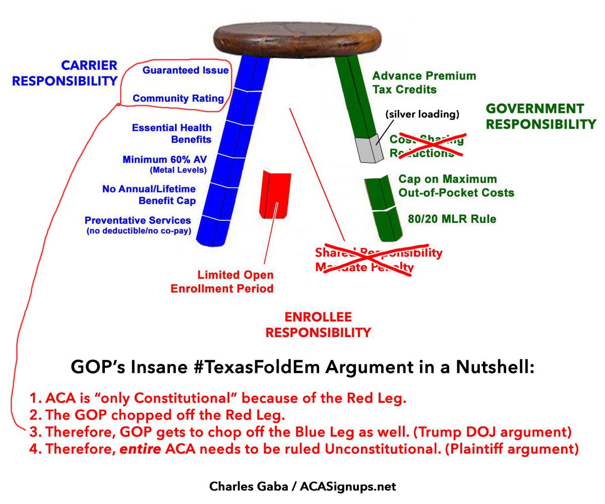 Once again: The "Blue Leg" of the Stool covers everything which ACA-compliant individual health insurance carriers are required to include: Guaranteed Issue, Community Rating, 10 Essential Health Benefits, a Minimum 60% Actuarial Value rating, no Annual or Lifetime Caps on coverage, and a long list of mandatory Preventative Services at no out-of-pocket cost when done in-network.
